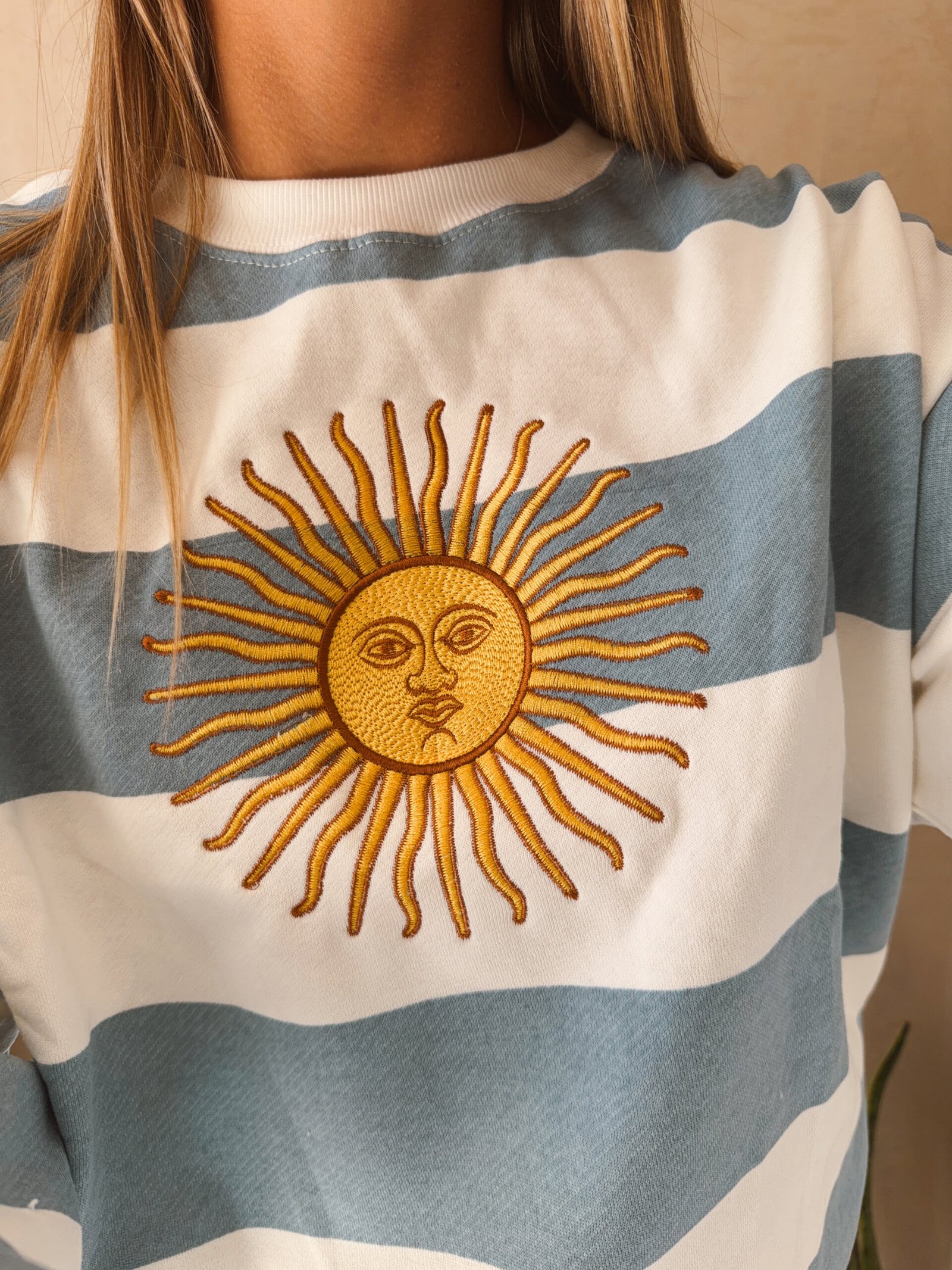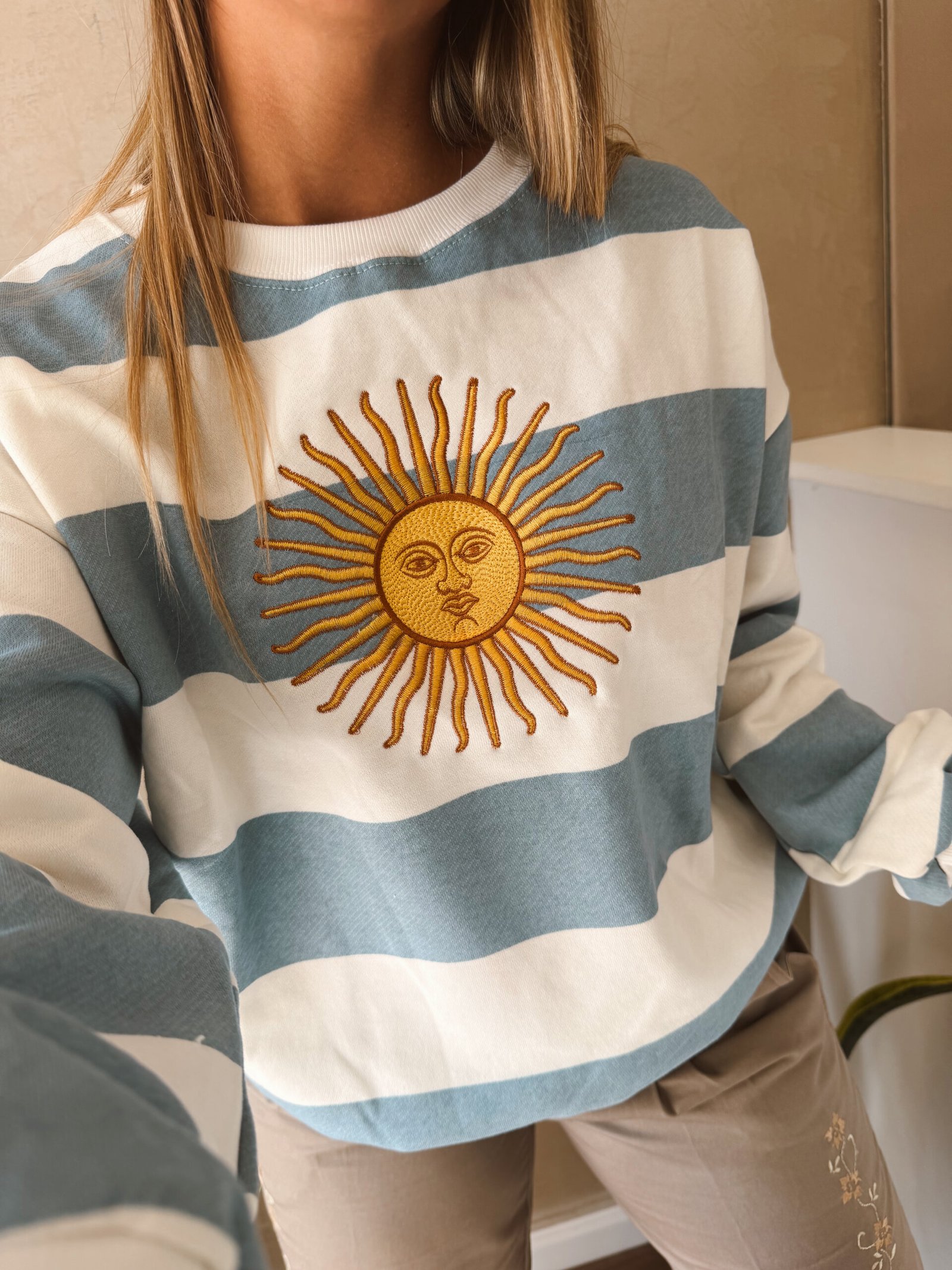 BUZO ALGODON RUSTICO BORDADO CELESTE