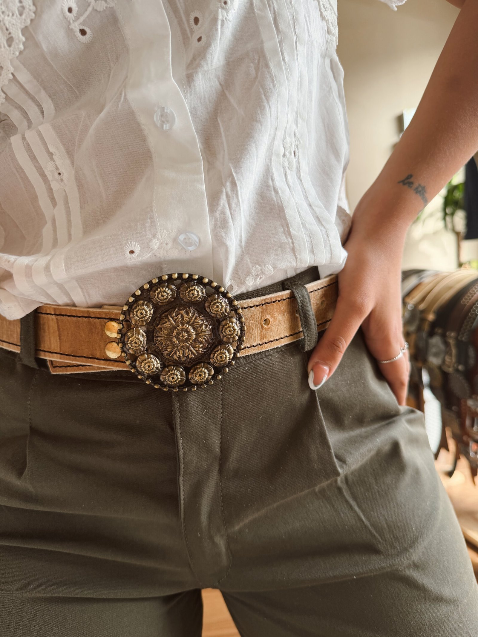 CINTO CUERO CRUDO BOTON TRABAJADO